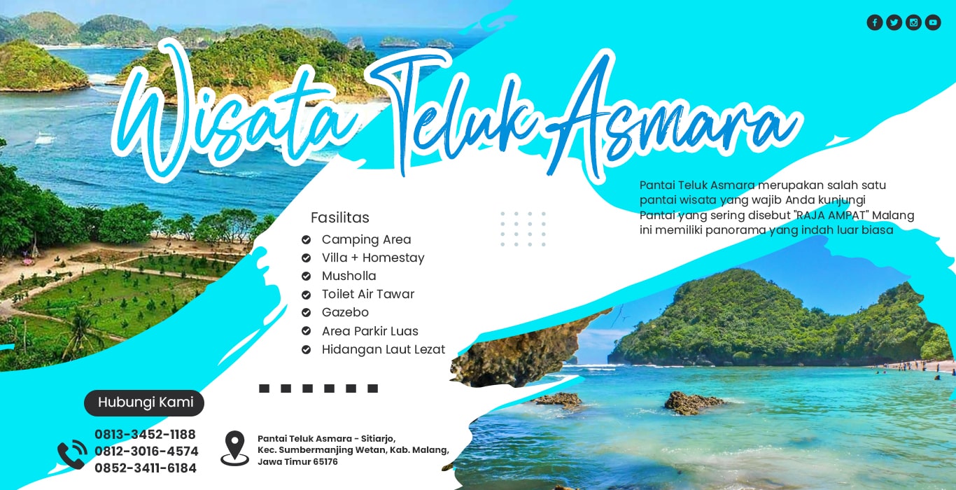Obyek Wisata Pantai Teluk Asmara resmi dibuka pada tanggal 14 Mei 2017. Lokasi wisata secara administratif masuk dalam wengkon Desa Sitiarjo, Kec. Sumbermanjing Wetan, Kab. Malang, Jawa Timur, ± 70 KM dari Kota Malang, bisa ditempuh melalui JALUR TIMUR ( Malang -Turen – Sendang Biru – Teluk Asmara ) dan JALUR BARAT ( Malang – Gondanglegi -Balekambang – Teluk Asmara )